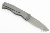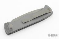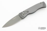 This TR-2 by Protech features a bead blast finish blade with gray handle with matching push button, stainless steel tip up clip. Opens strong and fast. Solid lockup with no blade play. Has some light scuffs and scratches, great condition otherwise.