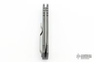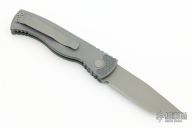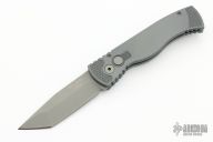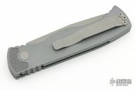 This TR-1.9 by Protech features a bead blast finish chisel grind tanto blade with gray handle with matching push button, stainless steel tip up clip. Opens strong and fast. Solid lockup with no blade play. Has some light scuffs and scratches, great condition otherwise.