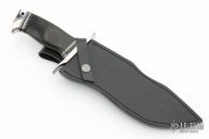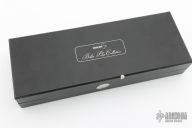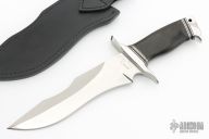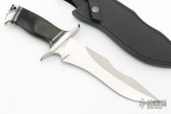 This Boker Plus Collection 2012 Knife features a mirror finished blade with false top edge, .259" blade stock and 2.039" blade depth, hidden tang construction. The handle has a stainless steel guard and butt, black canvas micarta grip with black and stainless steel spacers. Comes with a black leather sheath, original box and papers. #179 on the blade. Excellent condition. Bill Luckett Design