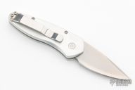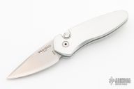 This Sprint by Pro-Tech has a stonewashed blade and a silver aluminum handle. Stainless steel clip. Excellent Condition.