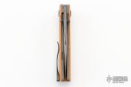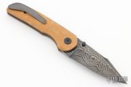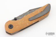 This P1 Linerlock by Edward R. Knives features a Bob Rankin Carbon Damascus blade with dual thumbstuds. The handle has maple richlite scales, tip up orange peel finish zirconium clip with hidden screws. Orange peel finished liners. Rides on bearings, nice detent, lockup and blade seating. Comes with knife case and COA dated July 2023. Made in collaboration with Brian Brown knives. Excellent condition.