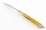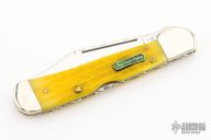 This Copperlock by Case Knives has been converted to a dual action automatic. It features a polished clip point blade with swedge and long pull. The handle is comprised of nickel silver double bolsters and jigged bone scales with John Deere push button over brass liners and a fileworked stainless steel lockbar. Has some light scratches, otherwise excellent condition.