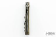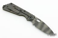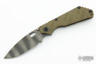 This MSC SNG framelock folder by Mick Strider features a tiger stripe blade and a Crosshatch Ranger Green G-10 and flamed titanium frame and tip up titanium clip. Includes Hinderer "Lock Bar Stabilizer" for maximum reverse lock retention. Nice detent, lockup and blade seating. New condition.