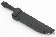 This Sandbar Bowie by Tops and Sterling F. Buster Cutlery Co. was made for Fight'n Rooster. It features a Tungsten Cerakoted blade with .181" blade stock and 1.406" blade depth, full tang construction with black G-10 scales with white liners. Comes with a kydex sheath with belt clip, and original packaging. New from maker. #23-057