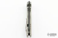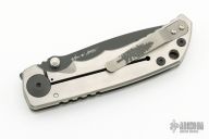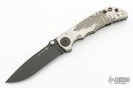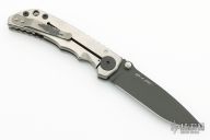 This Harsey framelock folder by Spartan Blades features a black drop point blade with dual thumbstuds and a notched thumbrest. The handle has a titanium frame with a laser engraving, a tip up titanium clip and filler tab. Has nice detent, lockup, and blade seating. Comes with original box and papers. Excellent condition.