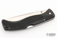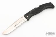 This Gunsite lockback folders by Cold Stel feature a partially serrated tanto blade with fileworked thumbrest and dual thumbstuds. The handle has black composite frame with an integral clip. Nice lockup and blade seating. Light scuffs are visible on the handle otherwise the knife is in excellent condition.
