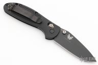 This axis-lock was designed by Mel Pardue and made by Benchmade features a black blade a notched thumbrest and dual thumb studs. The handle is composed of black FRN and a black steel tip up pocket clip. Includes the original box and papers. Excellent Condition.