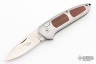 This Speed Lock Auto from Boker features a satin finish drop point blade with swedge. The handle has an aluminum frame with cocobolo inlays. Lanyard hole in pommel. Includes the original box and papers. Excellent Condition.