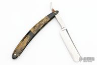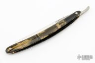 This straight razor by Golden Rule features a hollow ground blade. The handles has images of naked ladies on both sides. Has some scratches, has some patina, otherwise good condition for its age.