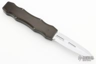 This Sand Shark OTF automatic features a silver finished double edge blade and black aluminum handle. The Sand Shark was a limited production and is no longer being made. Excellent condition.