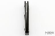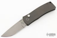 This Auto by Les Adams features a drop point bead blasted blade with false top edge. The handle has 5/32" thick carbon fiber scales and backspacer, tip up bead blasted titanium clip. Fire the blade by bulling the safety backward then pushing the button. "LEO14022" on blade. Comes with black nylon velcro sheath. New from maker.