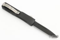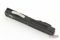 This Ultratech OTF automatic from Microtech features a black drop point blade.  The handle has a black anodized aluminum handle with stainless steel thumb slide and tip down clip. Dated 05/2008 with a serial number of 20036. Includes padded zipper case. Includes the original box and papers.  Excellent Condition.