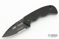 This knife by BlackHawk! Blades features a black blade with notched thumbrest. The handle features black G-10 scales over steel liners and a reversible tip down pocket clip. Includes the original box and papers. Excellent Condition.