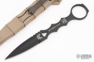 The Benchmade 176 SOCP Dagger is a Greg Thompson design. He is the creator of the Special Operations Combatives Program (SOCP) and has years of training and experience to draw from. This skeletonized dagger has a finger loop that makes it easy to deploy and use in quick order. It is made from 440C stainless steel with a black finish. The 176 SOCP includes a sand colored sheath with clip and lanyard. The Benchmade SOCP 176BKSN Combo is an excellent choice from the Benchmade 170 SOCP Series.