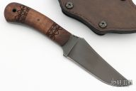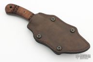 All the versatility of the famed WK Belt Knife but with a smaller profile. It is well suited to processing game and most everyday cutting chores. Knife Specifications Blade steel: 80CrV2 Black oxide no-glare finish Blade length: 4" Overall length: 8" Blade thickness: .189" Skeletonized full tang Thumb index file work Sheath Lined Kydex® with leather cover Designed for multiple carry options. Comes with original packaging. Excellent condition.