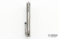 This Anax by Marfione Custom Knives features a stonewashed drop point blade with satin flats and a notched thumbrest. The handle has an integral titanium frame. Nice detent, lockup and blade seating. "A. Marfione" inside the frame and dated 02/2015. Comes with original zippered case, box and papers. Excellent condition. This was the first version of this model
