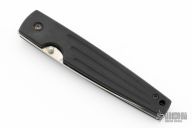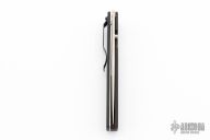 Boguszewski design folder by Benchmade with satin finished blade, single thumbstud. Black coated aluminum handle with linerlock. Tip down carry black stainless steel clip. Has a couple very light scuffs, otherwise excellent condition.