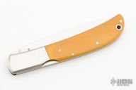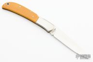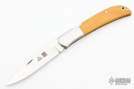 This Eagle by Al Mar features a satin finished blade with nail nick. The handle has stainless steel bolsters, ivory paper micarta scales with a stainless steel backspacer. Comes with original box and brown leather sheath. Has some scratches, otherwise good condition.