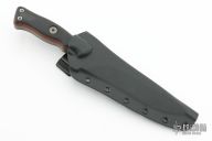 Made out of 0.31" thick 1075 carbon steel, the differentially heat treated blade will be impact resistant on the edge with a very strong spine. The handles start with black canvas Micarta on the bottom sandwiched with black G10 on top that has a great texture for grip. The entire handle is also over 1" thick once assembled to fill out the user's hand much like an axe or hatchet handle would.