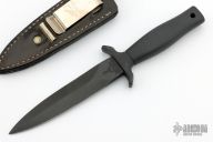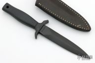 This Mark 1 dagger by Gerber is double-edged black blade with a hidden tang construction, .245" blade stock and .933" blade depth.  The handle has a black coated aluminum handle.  Includes a black leather sheath. Has some light spotting on the blade, otherwise excellent condition.