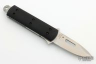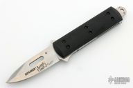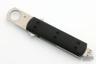 This Swing Lock by Explorer features a satin finished blade. The handle has black composite scales with stainless steel liners. Pull the ring out to unlock the blade and rotate it open. Do the opposite to close. Comes with original box, sheath and papers. Excellent condition.