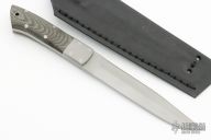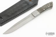 This fighter features a bead blasted double edged blade with a full tang construction.  .247"Blade Stock.  1.218" Blade Depth.  The handle has bead blasted blade steel bolsters and micarta scales.  Includes a kydex sheath.  Scuffs/scratches are visible otherwise the knife is in good condition.