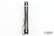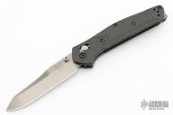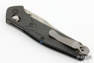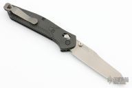 The Warren Osborne designed Benchmade 940 is a popular knife for good reason. It's a comfortable everyday carry knife with its slim design, great ergonomics and lightweight. The 940-1 has a premium CPM-S90V steel blade with a plain edge and a stonewash finish. The carbon fiber handle has stainless steel liners and blue anodized aluminum barrel spacers. Includes the original box and papers. Comes with an aftermarket Lynch titanium pocket clip. Excellent Condition.