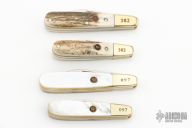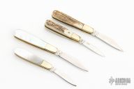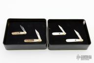 This Lot of Hen & Rooster 160th Anniversary Sets features two tin boxes with two numbered sets of knives, one marked father and the other marked son. The second set has one marked grandfather and granddaughter. Both come with original papers. Excellent condition.