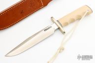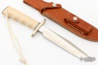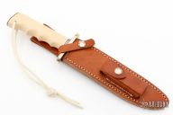 The Model 1 was made famous by Allied combat troops in World War II and has since been widely used in all theaters of war. It has .230" blade stock. 1.156 blade depth, satin finish blade with sharpened top edge. The handle has a nickel silver guard and butt, ivorite grip with finger grooves, black/duralumin spacers. Comes with brown leather sheath. Excellent condition. Comes with a Randall zippered case.