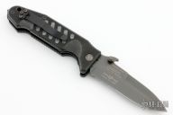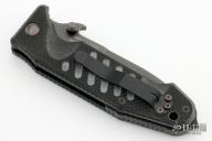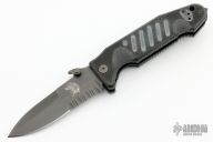 Fox Cutlery seamlessly blend together the finest available tactical knife components- precision machined G-10 handles, massive cobalt vanadium N690Co Bohler stainless steel blades and a hardened glass breaker/impact pommel with Ernest Emerson?s patented wave rapid opening device. The heart of the Delta Wave is the razor sharp partially serrated spear point blade, (Rockwell-C-59/60) treated with a black DLC coating for the utmost in wear and corrosion resistance, while the liners, screws, clip and locking face are hardened to resist wear over time. An ambidextrous pocket clip and dual thumb studs are standard equipment. Whether you are looking for the hardest use tactical folder available or a martially influenced collectible with serious cutting performance, the Delta Wave easily fits the bill. Comes with original box. Excellent condition.