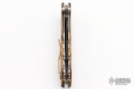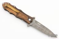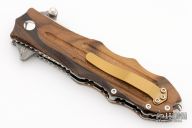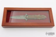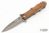 This knife by Blackhawk! Features a Damascus dagger style blade with a notched thumb ramp and flipper. The handle is composed of Ziricote Hardwood Scales over steel liners. The bronzed tip up pocket clip is reversible. Includes original box, display case and knife sleeve. S/N # 441/500. Excellent Condition.