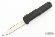 This Precipice by Benchmade features a black spear point blade with false top edge and fullers. The handle has a black aluminum frame with black stainless hardware and tip down reversible clip. Comes with original box and papers. Excellent condition.
