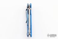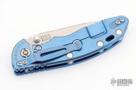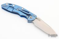 This XM-18 Spanto by Rick Hinderer Knives features a 3.5" stonewash finished blade, notched thumbrest and dual thumbstuds. The handle has a blue G-10 scale, and stonewashed blue titanium handle/clip. Clip can be mounted for tip up or down carry. Nice lockup, blade seating and detent. Comes with original box and extra hardware. New condition.