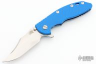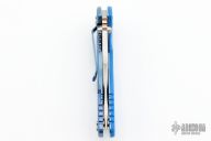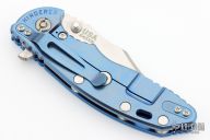 This XM-18 Flipper by Rick Hinderer Knives features a 3.5" stonewash finish blade, notched thumbrest and flipper, dual thumbstuds. The handle has a blue G-10 scale, and stonewash blue finished titanium handle and satin finished hardware, filler tab, and titanium clip. Clip can be mounted for tip up or down carry. Nice lockup, seating, and detent. Comes with original box and extra hardware. New condition.