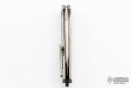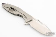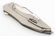 This Arius by Koenig knives features a Burnished w/ PF finished blade with thumbhole and flipper. The handle has a "Smooth" titanium frame with a matching titanium tip up clip and black timascus backspacer. Has ceramic bearings and a ceramic detent ball. Nice detent, lockup and blade seating. Comes with original box and COA May 23, 2023. New condition from the 2023 Blade Show.