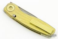This FSD by Craig Brown Knives features a drop point stonewashed blade and notched flipper and fullers. The handle has a tumbled and anodized titanium frame with milling style #1, titanium tip up clip and backspacer. Nice detent, action, blade seating and lock up. Comes with original hard case with certificate #106. Excellent condition.