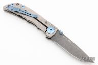 The Spartan Harsey Folder 3.25 “SHF 3.25” This is Spartan Blades latest folder collaboration with legendary knife maker, William "Bill" Harsey Jr. The SHF 3.25 is the knife many of you have been waiting for! A reliable 6AL4V titanium frame-lock knife with a 3.25” Damascus blade. Easy to carry and comfortable in the hand; a truly exceptional gentleman's (or ladies) folder. Constructed like its award winning big brother the SHF, the SHF 3.25 is totally made of 6AL-4V titanium, except the pivot, blade and stop pin. This medium sized folder has a reversible pocket clip and dual thumb studs allowing for left and right hand carry. If you are looking for a high quality and well-designed folder this is one you should strongly consider! Comes with original box2.8. Excellent condition.