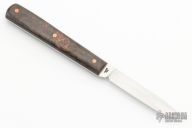 This Desk Knife by Noah Smith features a hand rub satin finished drop point style blade with 0.095" blade stock and 0.478" blade depth. The handle is comprised of fat carbon copper scales over full tang construction with copper pins. Comes with knife wrap. New from maker!