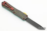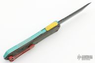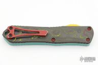 This Manticore-E by Heretic Knives features a battle black coated tanto blade with notched thumbrest. The handle has an aluminum frame with a camo carbon back cover, red stainless steel hardware and tip down clip.  Comes with original box, papers and sample tube of OTF Lube.  S/N 258.  Excellent Condition.