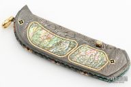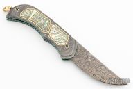 "I specialize in interframe and integral folders with each knife being individually crafted using the highest quality materials available. The character of each knife depends on the components and customizing techniques. I offer unique, patented mechanisms for the fun factor. Artistic carving is another skill I use to add dimension. For steels and engraving, I seek out the finest artist in their individual crafts. With these combinations we are able to offer truly unique pieces. I enjoy the multiple challenges that knife making presents. When I make a knife I must consider mechanisms that are reliable, smooth, and easy to use; materials that meet physical demands, and optional enhancements that dress up the tool. Bringing all these aspects together to make a knife that works, feels good in your hand, and is attractive looking is my personal goal. Matthew's work often incorporates Damascus, exotic natural materials, engraving, and file work done by his Wife, Mary Jo. Matthew has been making knives since 1984 and has been a Journeyman Tool and Die maker since 1981."