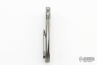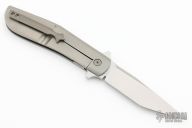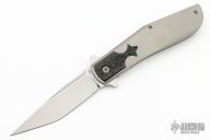 This Crosstrapper by Stephane Espi features a bead blast finished tanto blade with flipper tab. The handle has a bead blasted titanium frame with jigged inlay, and tip up titanium clip. Nice detent, lockup and blade seating. Comes with zipper case and COA. New from maker at the 2023 Bladeshow!