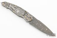 "Creating a knife by hand is what I consider a real art form. The passion for the cutting tools has always been in me and has grown with me until the decision to build my first knife alone. I started at 40, in 2003, practically self-taught, I had no experience of manual work, but I had done for many years the mechanical designer and this allowed me to know perfectly the technique and all the various stages of mechanical processing. Currently I am a member of The Italian Knife Guild, with a rank of Maestro. What I do now is what I consider my art form, creating "craft, hunting and collectible knives". They are knives made entirely by hand, only with an infinite series of files, a small drill for the holes and a sander for the concave grinding of the blades, nothing else. I create especially folding knives, which satisfy more my desire to build perfect mechanical objects and precisely the perfection in the smallest details, even inside where you can not see. Of course with the passing of the years I have refined my technique and currently I have improved even more. The mechanism inserting on the blade rotation a system of ball bearings, which guarantee an absolutely perfect seal and allow the blade to close and open without the least friction and with an incredible sweetness. With regard to the blades then, I'm experimenting with new types of hardening, which give hardness of 62-63 HRC and allow a thread seal and exceptional cutting quality for all types of use. I realize virtually all the knives on my initial design, they are all unique pieces made entirely by hand up into the smallest details, one at a time, so that, in my opinion, a knife can be considered "handmade". For the blades I prefer RWL34 steel which is sintered by powders and guarantees the total absence of internal defects, I sometimes use even the damask, both stainless and carbon. For the handles, one of the most beautiful materials is the mammoth tooth, which can be found in a variety of colors all beautiful, I also use the fossil ivory of mammoths, various roots, titanium and carbon fiber. Most of the knives, however, 'I do it completely in steel, to be able to then be engraved, always and strictly by hand, to transform even more' knife, into a real work of art ..."