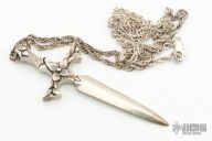 Silver Dagger Pendant w/ 24" Silver Chain. Pendant is 3.25" long and 1.25" wide and .195" thick.