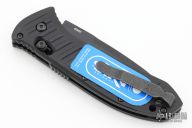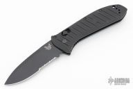 This automatic Presidio II model sports a black aluminum handle and a black finished blade with a partially serrated edge. Benchmade has updated their legendary Presidio model with significant ergonomic and performance upgrades. This combat legend has a black anodized 6061-T4 billet aluminum handle with Benchmade's AXIS lock system for effortless one-handed opening and closing. Milled grooves in the handle improve grip while adding a modern flair to the design. The Presidio II has a slightly larger blade and handle that is built to perform well as a tactical or everyday carry knife. Item includes a Cordura sheath with snap retention and a Malice Clip. 6061-T6 billet aluminum handle offers a tough build without weighing you down. Dual thumb studs, reversible pocket clip, and an AXIS® lock mechanism provide a fully ambidextrous design. Blade is made from CPM-S30V steel for maximized strength and cutting performance. Comes with original box, sheath and papers. Excellent condition.