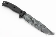 This Gen 2 Hell Razor from Busse features an Urban Multicam coated blade and black G-10 scales. .211" blade thickness and 1.753" blade depth, full tang construction. Has large fullers on blade and corrugated bevel technology. Great look and feel. Excellent work. New from maker. The Urban Multicam is an Arizona Custom Knives Exclusive!