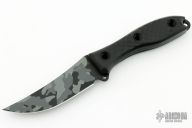 This Crab Trail Custom by Busse Custom Shop features an Urban Multicam cerakote blade with .093" blade stock and 1.223" blade depth, full tang construction. The handle has black G-10 scales. New from maker.