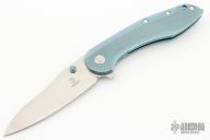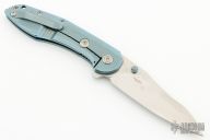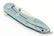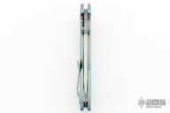 This Tolk Mid-tech by Brad Southard features a stonewashed finished blade with satin grinds, notched thumbrest and flipper. The handle has a milled titanium frame with anodize finished matching tip up clip, titanium barrel spacers, lockbar stabilizer and pivot. Bearing Pivot. Excellent condition.