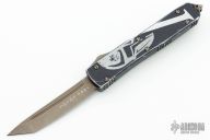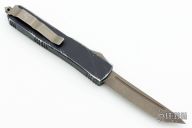 From the Microtech Exclusive collection, the Microtech Spartan offers a refined design that is rugged enough for EDC while maintaining a unique collectible look. The Spartan's blade is marked with the Greek phrase Molon labe, meaning "come and take them", a classical expression of defiance. Bronzed hardware, blade and clip add a classic finishing touch to the design. This Spartan model features a tanto blade with a bronzed finish. Microtech equipped this version of the ever popular Ultratech D/A OTF knife with a smooth, contoured handle design that promotes increased comfort during use. This updated model provides the same dimensions, hardware, and durability offered by the "Tri-Grip" variation, but goes easier on the hands and pockets. For those unfamiliar with the Ultratech, it's a fully automatic knife with a double-action out-the-front mechanism, meaning the thumb slide deploys the blade and retracts it as well. The Ultratech knife from Microtech has set the bar for all OTF knives. Excellent condition with original box and papers. Dated 09/2016