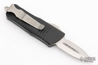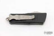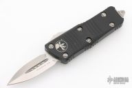 This Troodon Mini OTF automatic by Microtech knives features a satin finished double edged blade, and a black aluminum handle with bead blasted hardware, tip down carry. Glass breaker. S/N 2952. Dated 10/2021. Excellent condition. Comes with original box and papers.