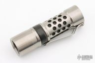 Brake Torch - Titanium with blackened brass inner sleeve - Free XPC HI 2700K - 163401MR 700mAh unprotected button top - Machine Finish - H17F Driver - has blue turbo glow kit and inner sleeve. Comes with original COA. Excellent condition.